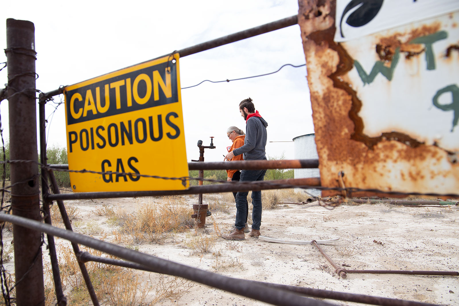 It’s a scorching afternoon in mid-July, and Ty Edwards drives his pickup toward Imperial, Texas, a tiny community at Pecos County’s northernmost fringe. “Here’s the sinkhole,” Edwards says suddenly. “You see the highway sagging down?” As if on cue, the truck and its passengers start leaning ever so slightly to the left. The tilting highway comes courtesy of a caved-in abandoned well underneath it, Edwards explains. He turns onto a dirt road leading to Pecos County’s most infamous landmark: Boehmer Lake, a 2,000-foot-wide deadly pool of putrid water. That too is a legacy of the county’s widespread abandoned well problem. The place reeks of sulfur, and a nearby sign cautions travelers about poisonous gas.