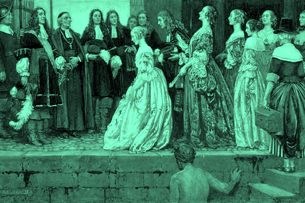 The story of T14484C begins in 17th century North America, in the colonies then known as New France. Colonists there included a few hundred French colonists, some migrant workers engaged primarily in the fur trade, and some Jesuit priests – that is to say, it was heavily male with little incentive for families and unmarried women to travel and settle there. In order to incentivize colonization, Louis XIV implemented a 10-year policy of shipping unmarried French women to the colony, encouraging marriage (using generous dowries) with French workers and soldiers.